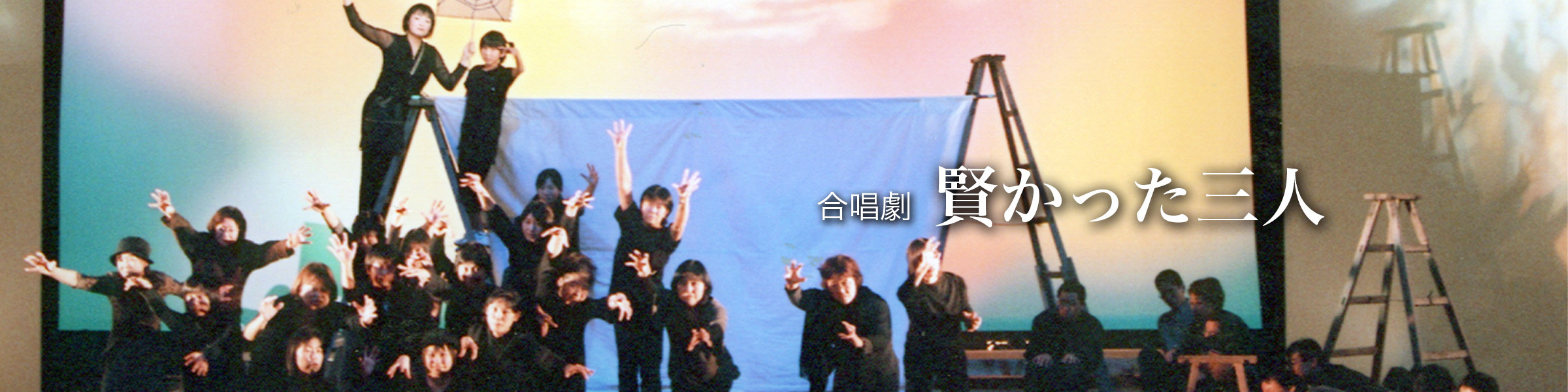 オペラ「賢かった三人」は、1994年こんにゃく座が初演したものの、再演を期につくった縮小版。合唱団向けに直すということは特にしなかった。なんでもいいから一番になれという、洞熊先生の教えを忠実に守って破滅してしまうクモとナメクジとタヌキに、こんにちただいまの人間世界のすがたを見ることもできようが、そのことにちからを入れてつくったものではない。単純に、虚心に、おかしなハナシを楽しんでいただきたいと思う。